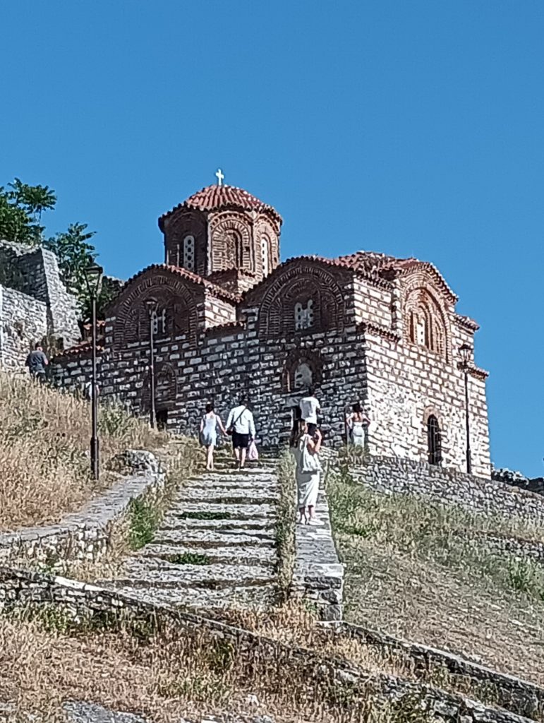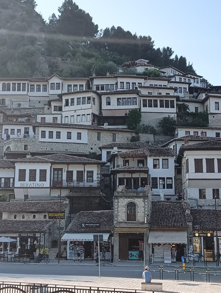 Llegamos a Berat, ciudad Patrimonio de la UNESCO con castillo y edificios bizantinos y otomanos.