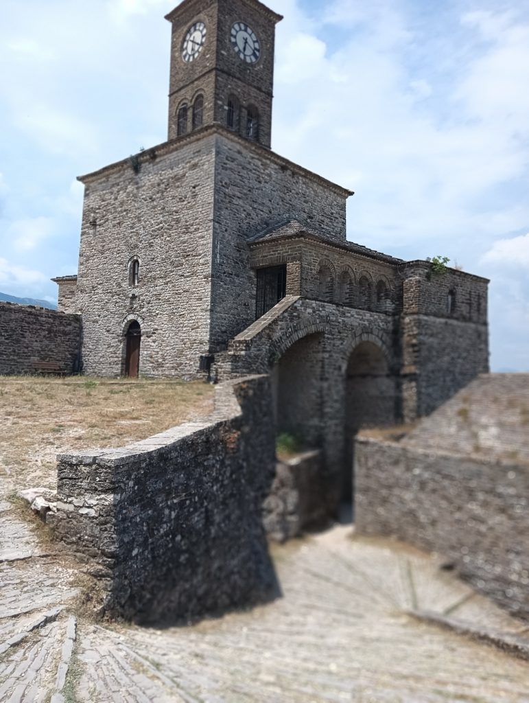 Subiendo una cuesta, en la que las artesanas de tela han extendido sus labores, caminando, o en taxi para quien no se atrevió, llegamos a las puertas del majestuosos castillo, el último de las defensas, por eso nunca llegó a entrar en combate. Aloja un museo de armas capturadas a los nazis y los italianos en la segunda guerra mundial, incluyendo un mini carro de combate Fiat muy curioso, delante de una estatua colosal dedicada la los jóvenes partisanos que se enfrentaron y ganaron a las tropas de ocupación.