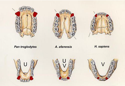 Los fósiles muestran que los dientes humanos han cambiado según la dieta y el modo de vida, por ejemplo, Henke & Tattarsall en 2016, describen cómo el Australopithecus presentaba molares grandes para triturar vegetación dura, mientras el Homo sapiens desarrolló dientes más pequeños a medida que la dieta incluía alimentos cocidos y procesados.